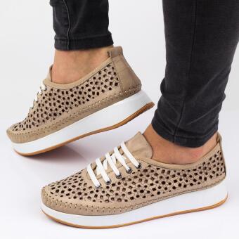 Beżowe skórzane półbuty damskie: