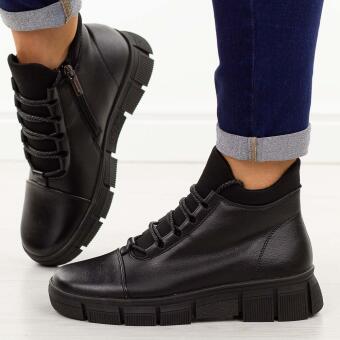 Czarne skórzane botki damskie Jezzi Ol23-2