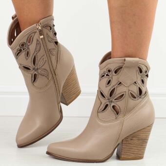 Czekoladowe zamszowe Polskie kowbojki damskie botki zimowe D...