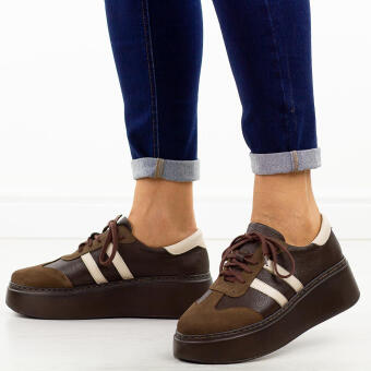 Czekoladowe skórzane sneakersy damskie Deoni D632