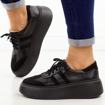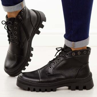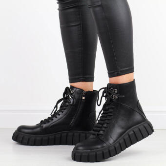 Czarne skórzane botki damskie na platformie Cambell 19339