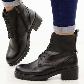 Czarne skórzane botki damskie na traperze Jezzi 24172-5