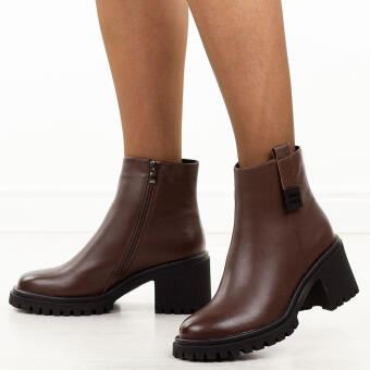 Brązowe skórzane botki damskie na traperze Cambell 29312
