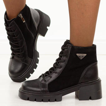 Czarne skórzane botki damskie na traperze Cambell 29312