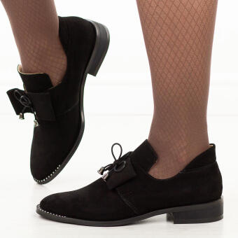 Czarne półbuty damskie z kokardą S.Barski 319