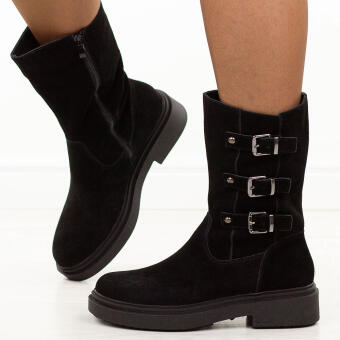 Czarne zamszowe skórzane botki damskie na obcasie DiA 52-217