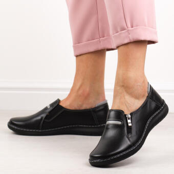 Czarne skórzane półbuty damskie na wiosnę i jesień